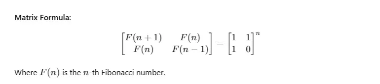 The Fibonacci sequence is a classic problem. Calculating Fibonacci numbers directly can be slow. Using matrix exponentiation, you can find the nnn-th Fibonacci number efficiently.